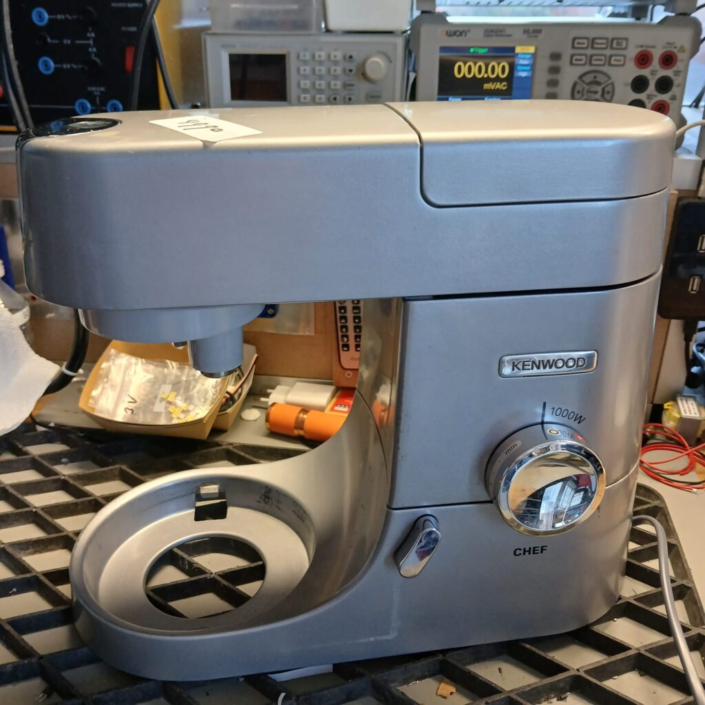 Vandaag een Kenwood Chef Keukenmachine met klacht dat het toerental niet meer regelbaar is. Deze machine heeft een eenvoudige opzet, motor, electronische regelaar en een magneetsensor voor detectie snelheid.